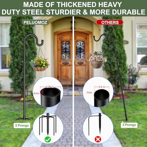[2025 Updated Extra Durable Construction] – The shepherds hooks for outdoor bird feeders is designed with an extra-long 12-inch 5-prong base. The garden plant stand features 20mm(0.7inch) diameter, 2mm thick steel tubing. Prevent bending or breaking. surface is covered with matte powder paint rust-proof and more durable. Updated shepherd hooks provide greater stability and greater load-carrying capacity even in a extreme weather conditions.